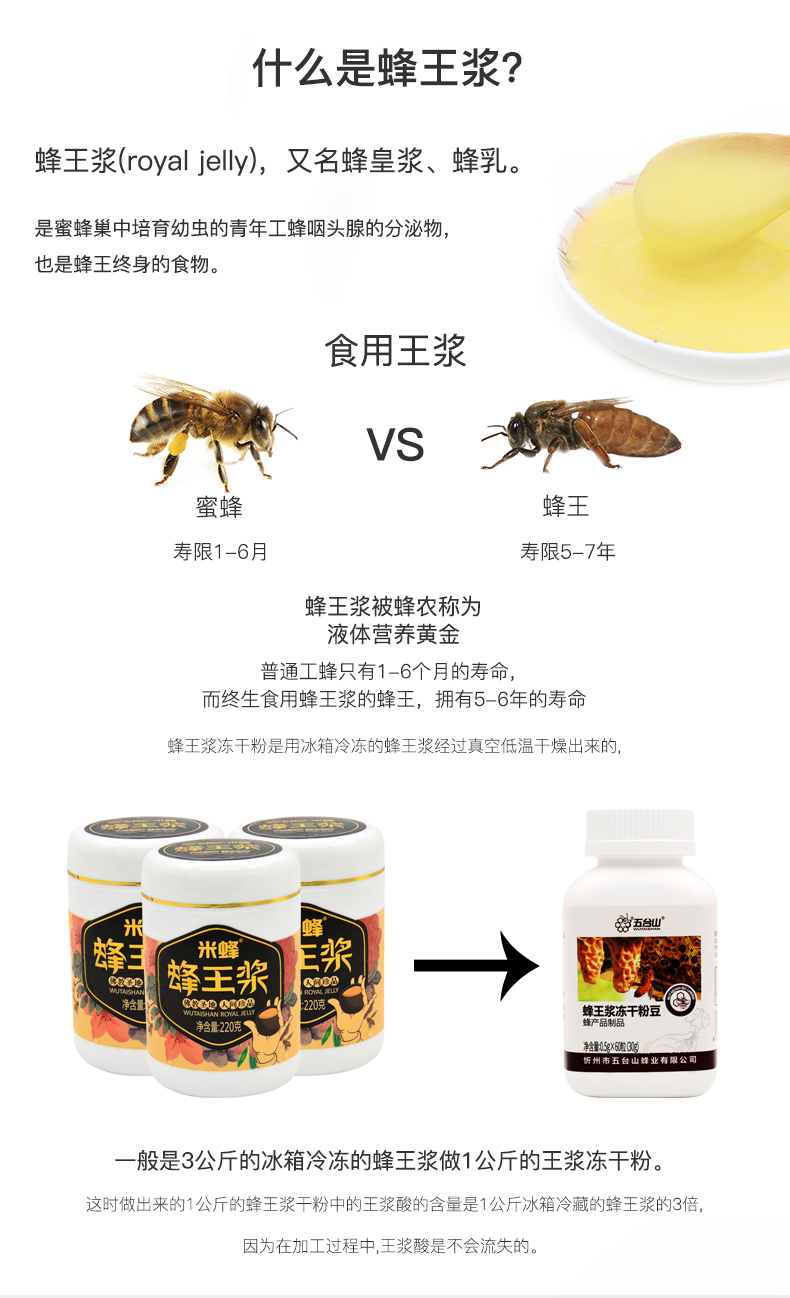 五臺山蜂王漿凍干粉豆60粒